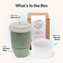 BPA-free silicone lid and sleeve included