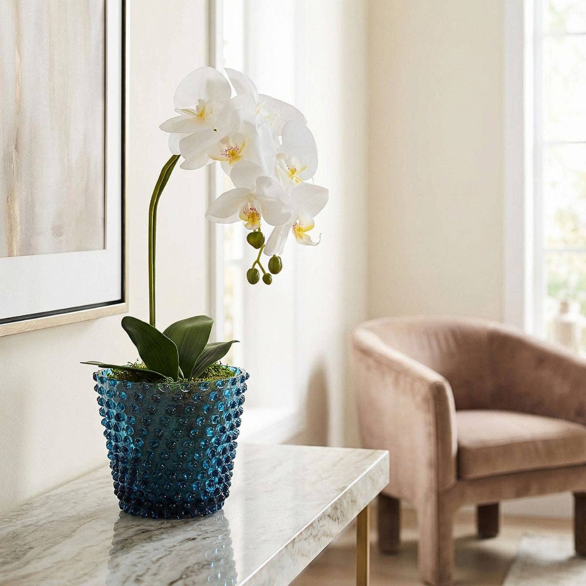 This planter is designed without drainage holes and is not intended for direct planting. To preserve both your greenery and the integrity of the vessel, we recommend placing plants within a pot liner that includes proper drainage holes.