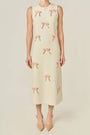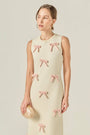 If this isn’t demure we don’t know what is! The Lila Bow Midi Dress is a charming blend of elegance and whimsy. Crafted from soft knit fabric, it features a flattering sleeveless silhouette and delicate bow accents for a feminine touch. The midi length keeps the look refined yet playful, perfect for brunch, special occasions, or an effortlessly polished day out.