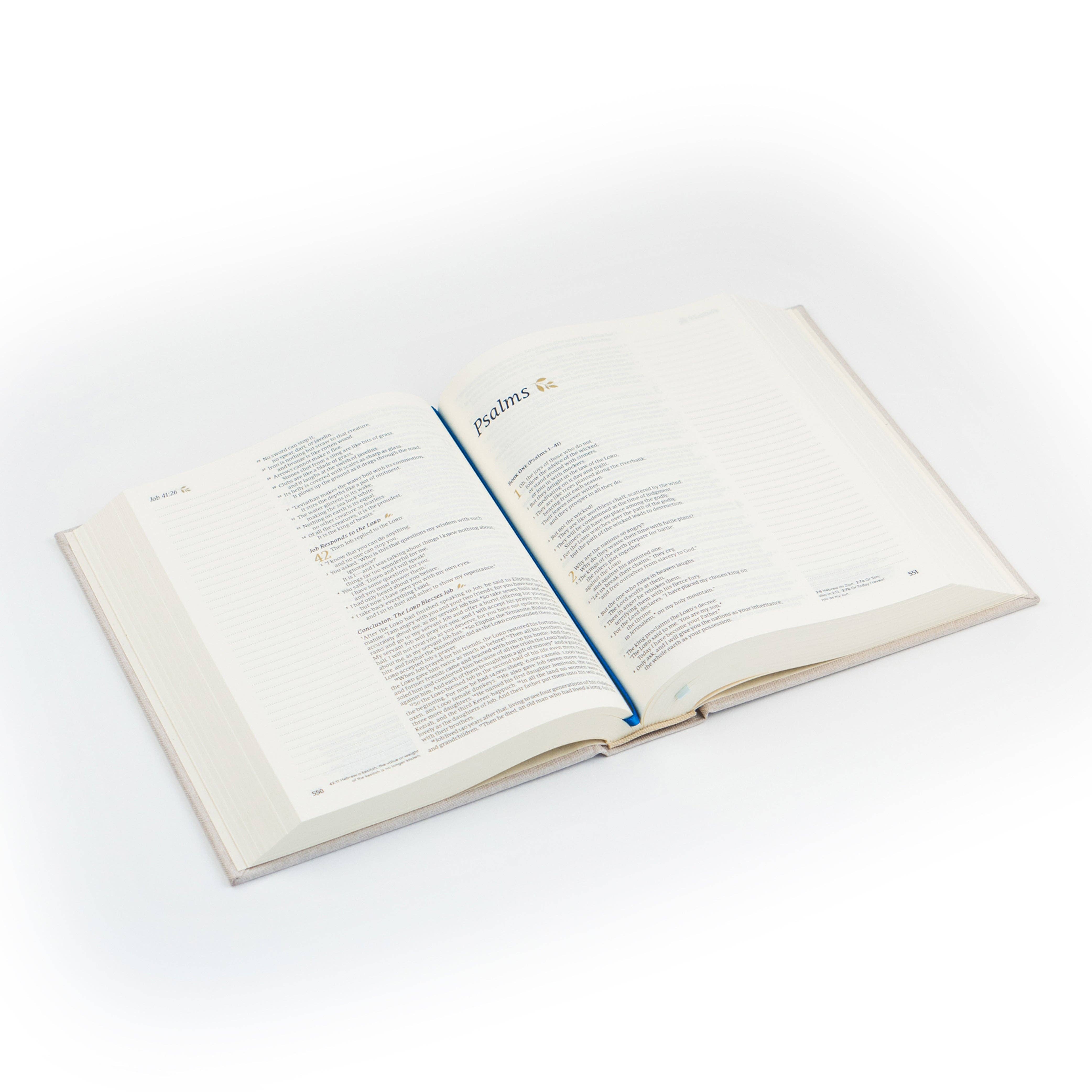 This hardcover NLT Notetaking Bible is inspired by Adelaide, the rose capital of Australia. Adelaide features an intricate blue floral frame and beautifully displays Ephesians 2:10, “For we are God’s masterpiece,” on the back cover.