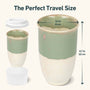 Infuse calm into your daily ritual with the Sage Green Ceramic Mug. Featuring a soft green and cream glaze inspired by nature’s tranquility, this 12oz mug adds mindfulness to every sip. Each is handcrafted with a unique finish—no two are alike. Crafted from durable stoneware ceramic, it ensures a clean taste with every brew. A BPA-free silicone lid and heat sleeve offer spill-resistant convenience at home or on the move. Perfect for gifting during the holidays or elevating your everyday coffee moment.